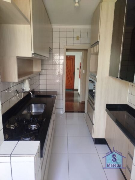 Apartamento no terceiro andar, com dois dormitórios sendo uma suite, um closet, sala com sacada, cozinha com armários planejados, banheiro social e uma vaga de garagem. Piso: cerâmica.