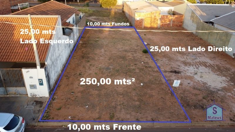 Terreno murado na lateral esquerda, com frente para a Rua Luiz Mazzaia, medindo 10,00 por 25,00 (250,00 mts²).