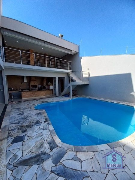 Maravilhoso sobrado contendo no piso térreo: Garagem (portão automatizado), sala de visita, escritório (com móveis planejados), jardim de inverno, banheiro social, sala de jantar, cozinha (planejada), lavanderia, banheiro externo, área de lazer com churrasqueira, forno à lenha, cooktop, forno a gás, piscina (com sistema de aquecimento) e varanda; Contendo no piso superior: Sala de tv com sacada, banheiro social, 03 dormitórios (sendo dois com armários planejados e uma suíte com sacada) e área de lazer. Piso: Porcelanato.