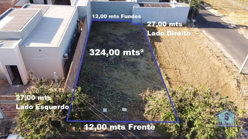 Terreno murado em uma das laterais e fundos, medindo 12,00 por 27,00 (324,00 mts²).