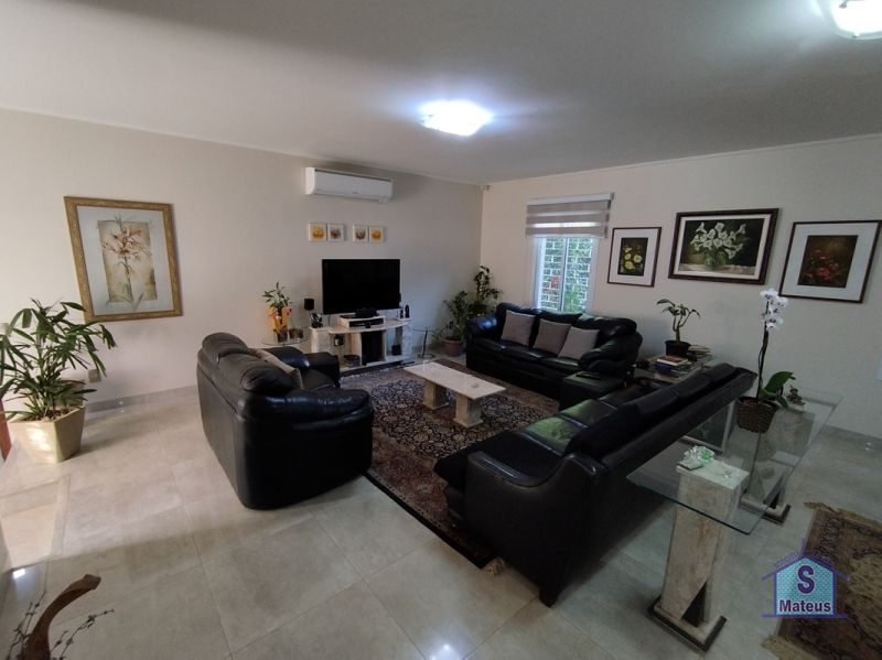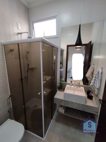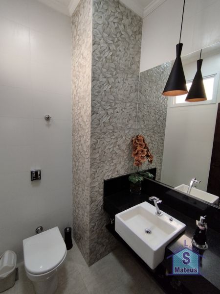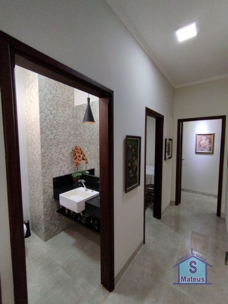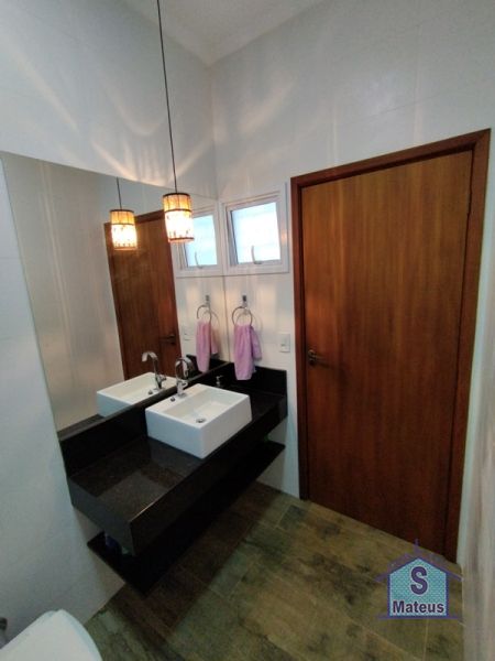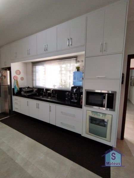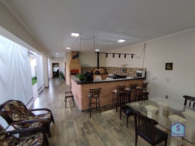 Casa de laje com 02 dormitórios suítes (ambos com ar condicionado, sendo um com closet também com ar condicionado), lavabo, sala dois ambientes com ar condicionado (visita e tv), sala de jantar com ar condicionado, cozinha com armários planejados, lava louça, microondas, fogão e coifa; despensa, depósito, lavanderia, área de frente, garagem (portão automatizado), escritório com armário, ampla área de lazer com churrasqueira e forno; 02 dormitórios e banheiro externo, sistema de aquecimento solar e cerca elétrica.