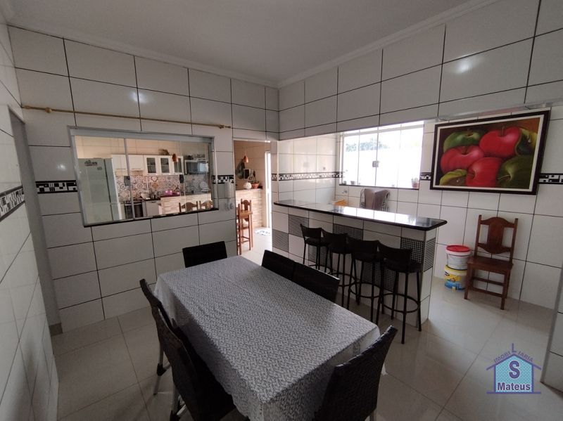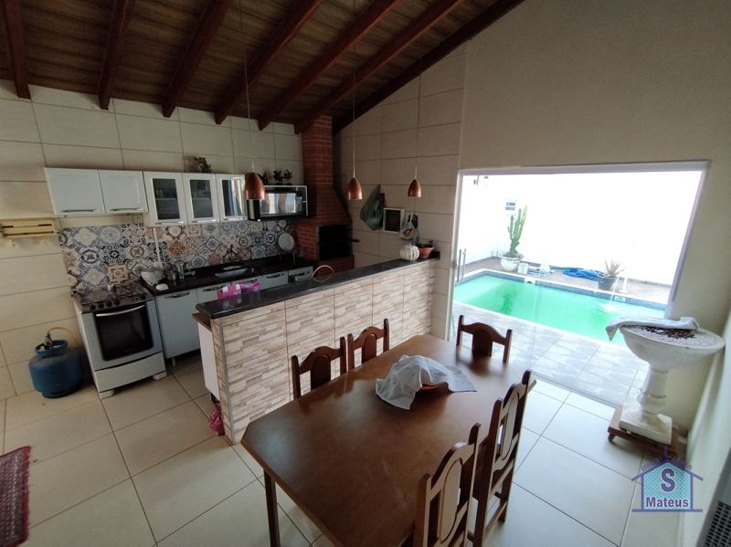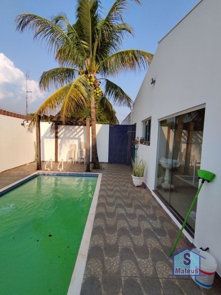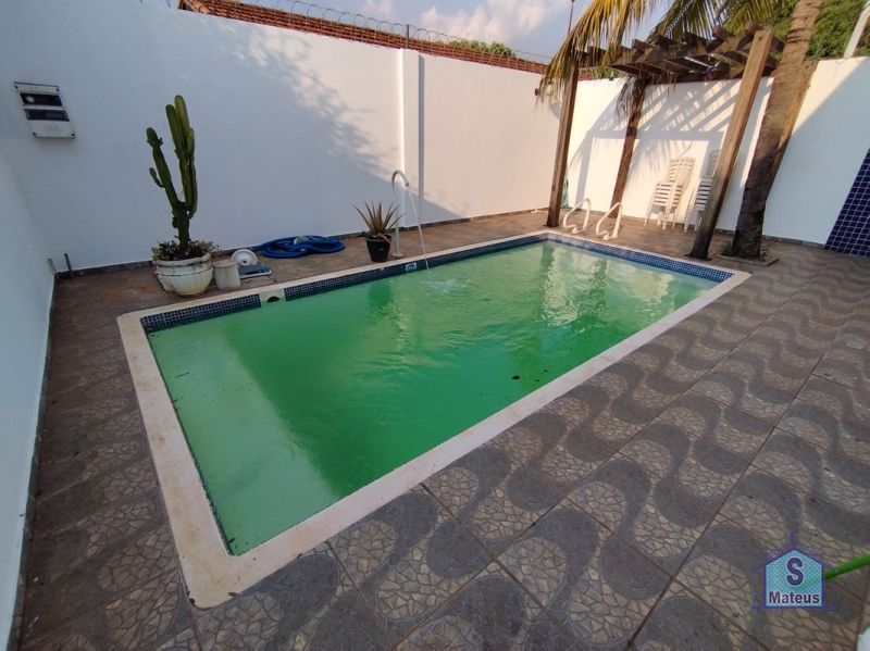 Casa de laje com 03 dormitórios (sendo um com armário planejado e uma suíte com ar condicionado), sala dois ambientes, cozinha (com armários e cooktop), banheiro social, jardim de inverno, área de frente, garagem (com portão automatizado), lavanderia, varanda gourmet com churrasqueira e piscina. Piso: Porcelanato.
