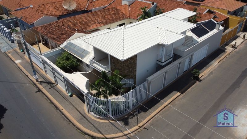Lindo Sobrado com sistema de aquecimento solar (banhos e torneiras) e cerca elétrica, contendo no piso térreo: 03 dormitórios (todos com armários planejados, sendo uma suíte com banheira); sala de visita integrada com as salas de jantar e tv (com ar condicionado); jardim de inverno, cozinha com armários planejados, torre quente com forno embutido, bancada de granito e cooktop; despensa, lavanderia com armários planejados; área de secagem de roupas; ampla área de lazer com churrasqueira, armários planejados, cooktop; ar condicionado e banheiro em anexo; piscina aquecida, depósito e garagem (portão automatizado). Contendo no piso superior: Sala De Som, escritório 03 sacadas e banheiro. Piso: Cerâmica.