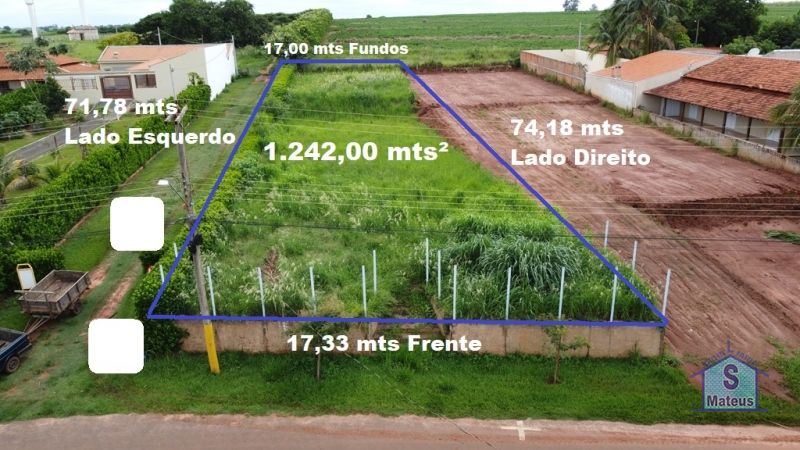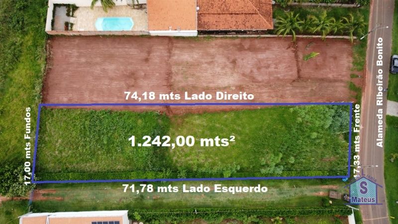 Terreno medindo 17,33 metros de frente; 17,00 metros nos fundos; 74,18 metros do lado direito; e 71,78 metros do lado esquerdo, perfazendo 1.242,00 metros quadrados de área.