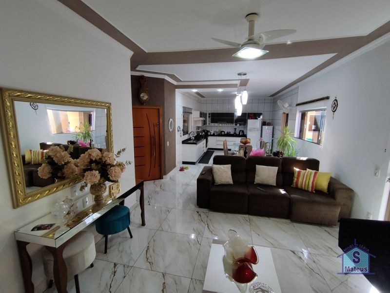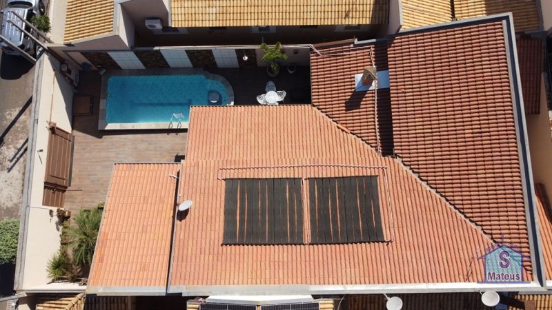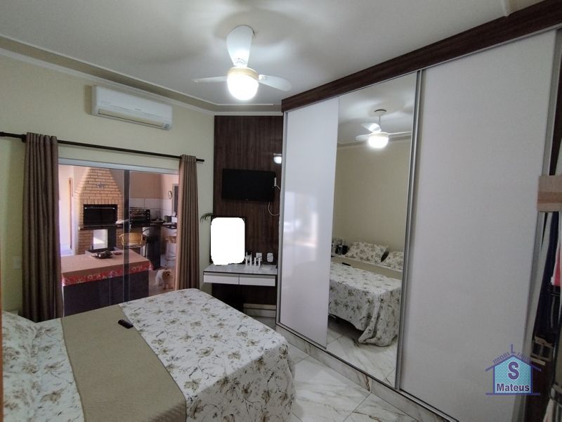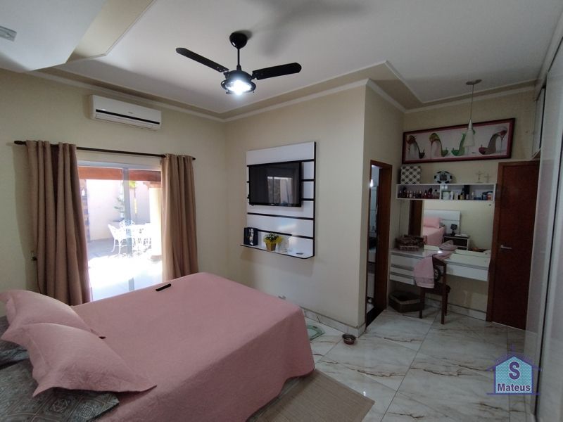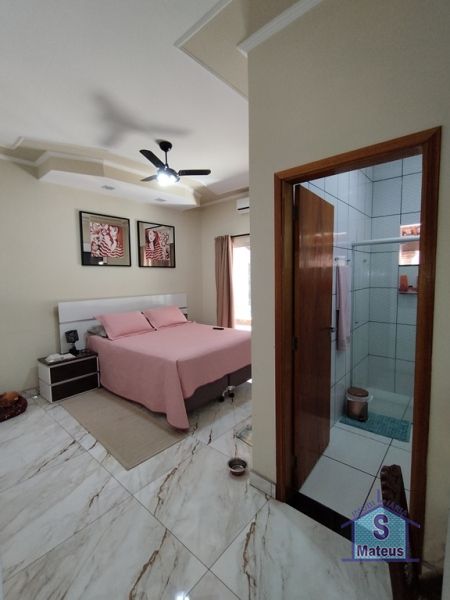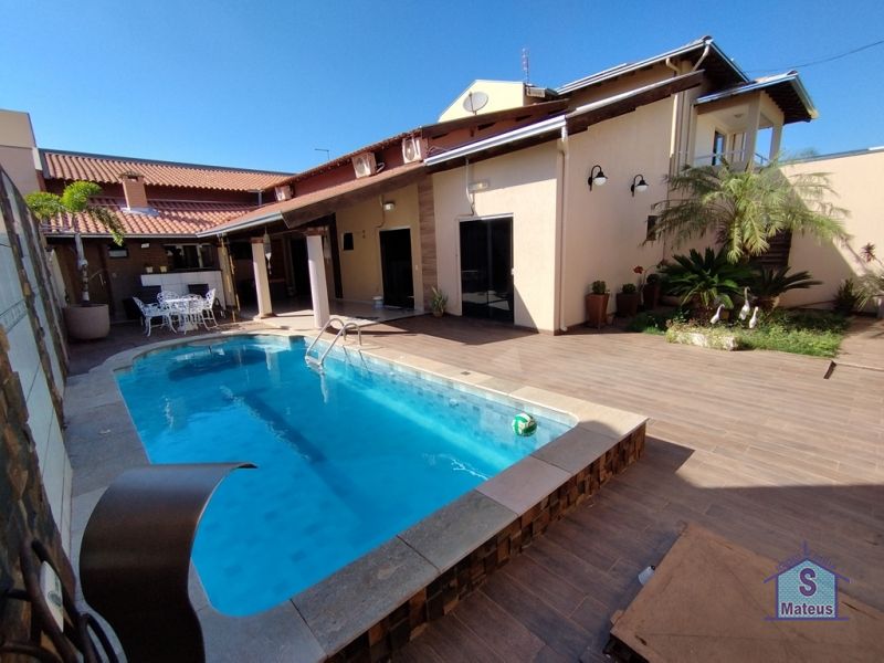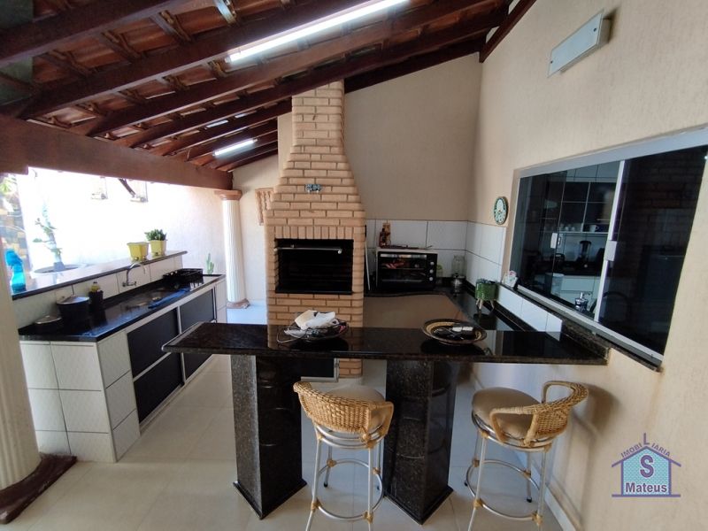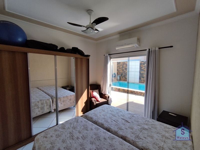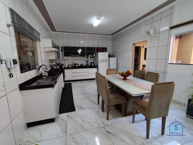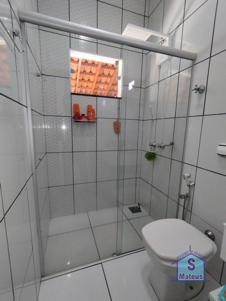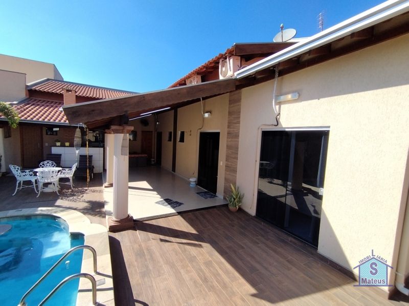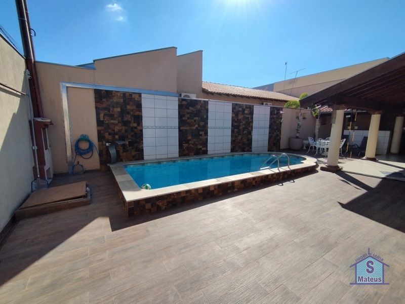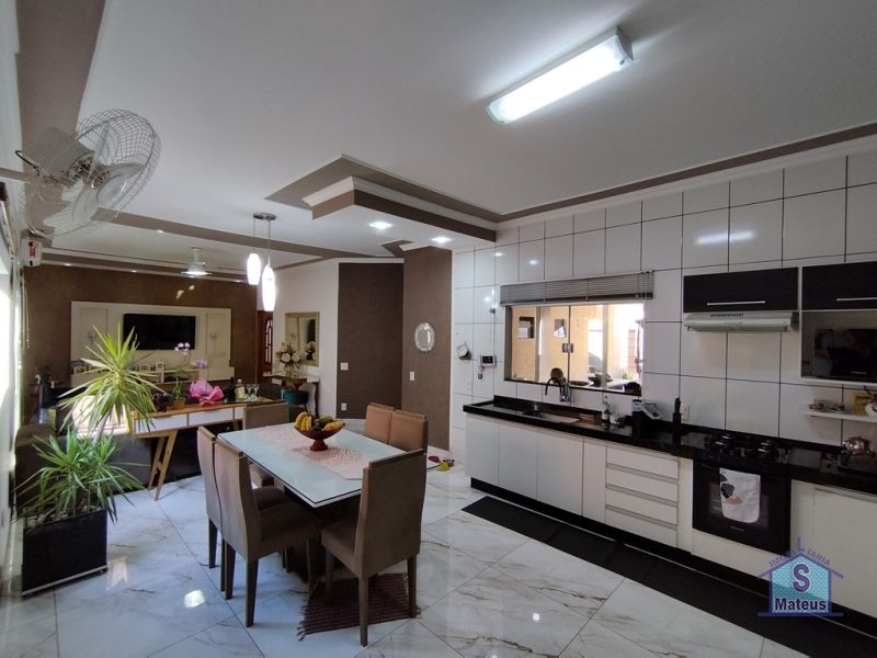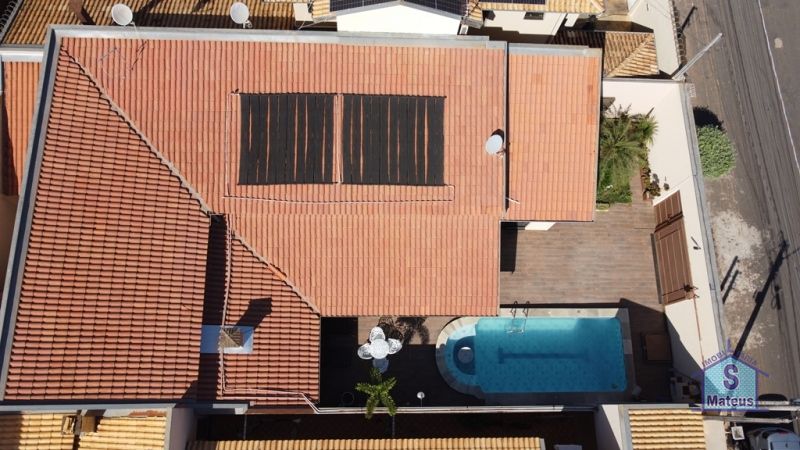 Casa de laje com 03 dormitórios (todos com ar condicionado, sendo duas suítes, uma com armário planejado); banheiro social, sala de tv, cozinha com armários planejados, fogão embutido e depurador; lavanderia (com armário), depósito, ampla área em "L", servindo como garagem e área de lazer, contendo churrasqueira e banheiro; e piscina com sistema de aquecimento solar. Piso: Cerâmica.