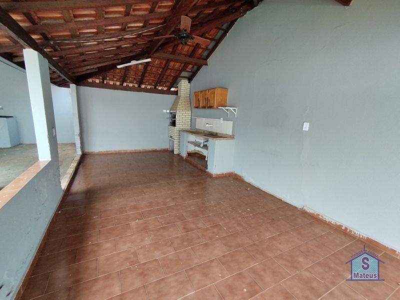 Casa com 03 dormitórios, sala de tv, sala de jantar, cozinha, banheiro social, ampla área em "L", garagem, área de lazer com churrasqueira, área de serviço, depósito e banheiro externo. Piso: Cerâmica. Forro: Madeira.