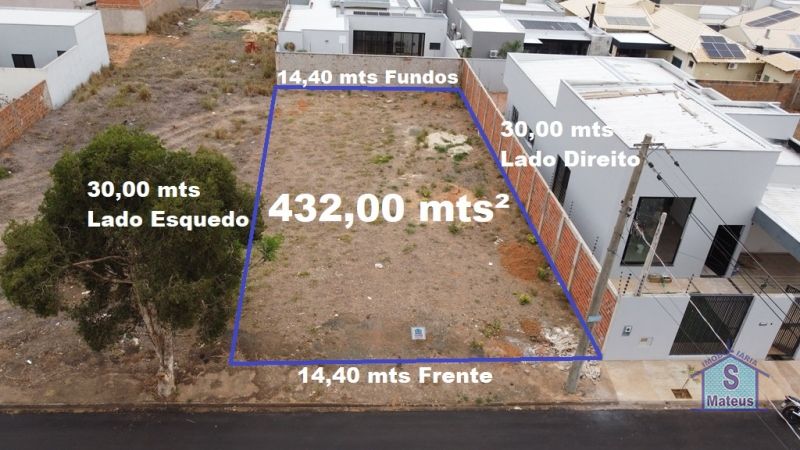 Terreno murado em uma das laterais e fundos, medindo 14,40 metros de frente; 14,40 metros nos fundos; 30,00 metros do lado esquerdo; e 30,00 metros do lado direito, perfazendo 432,00 mts² de área.