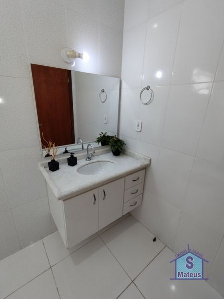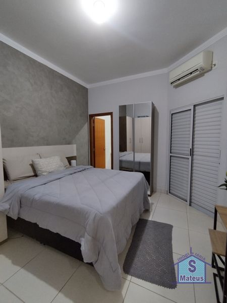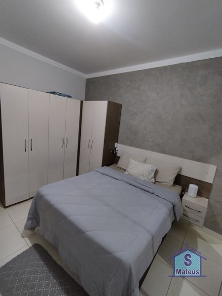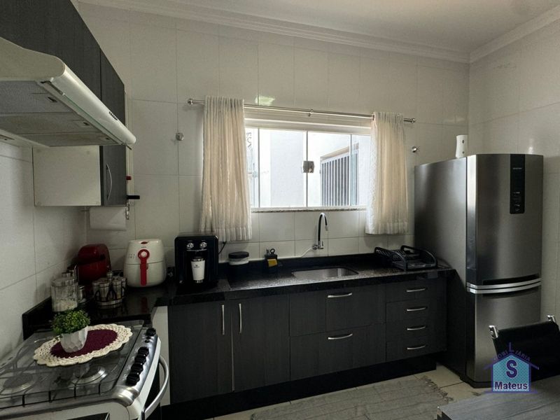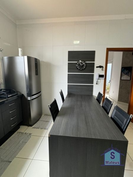 Casa de laje com 03 dormitórios (sendo uma suíte com armário planejado), banheiro social, sala (com home), jardim de inverno, cozinha com armários e mesa para refeições planejados; área de frente, garagem (portão automatizado) e área de serviço. Piso: Cerâmica.