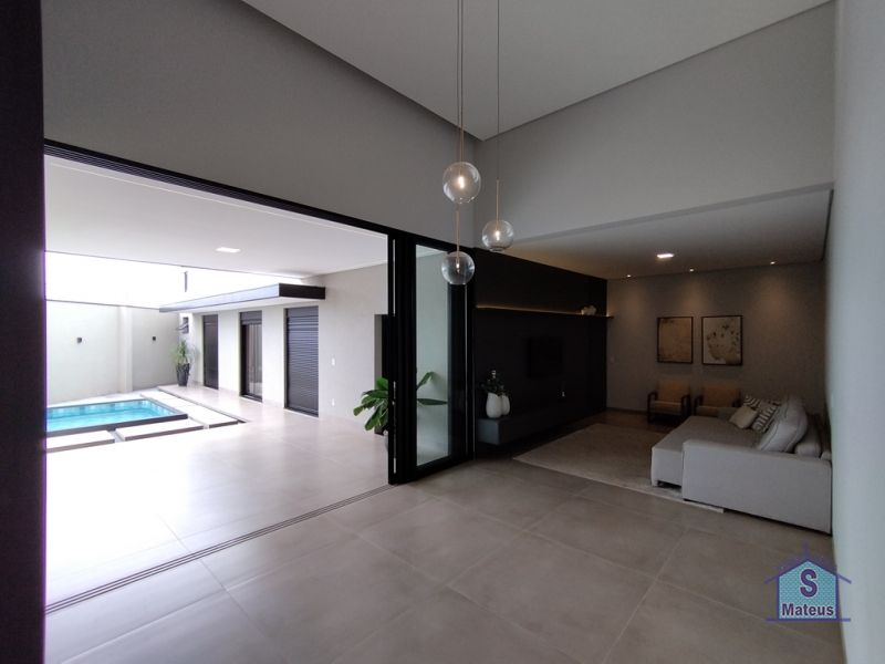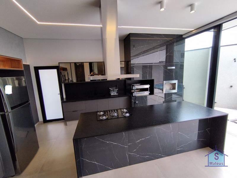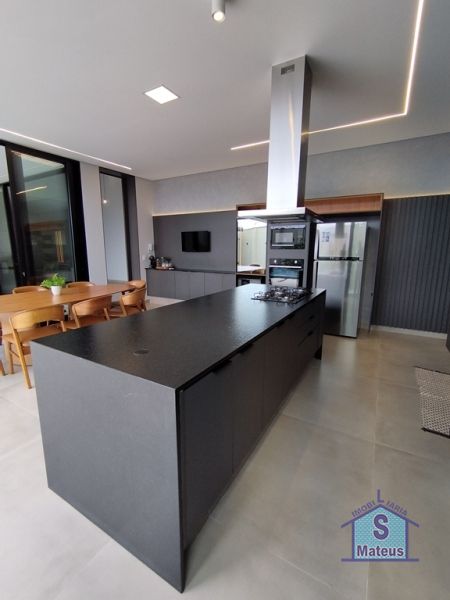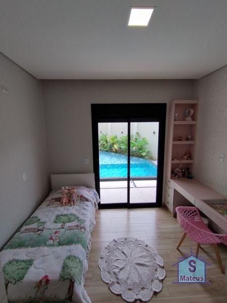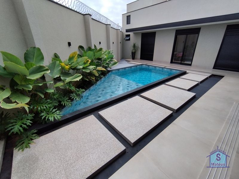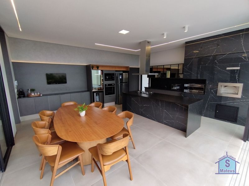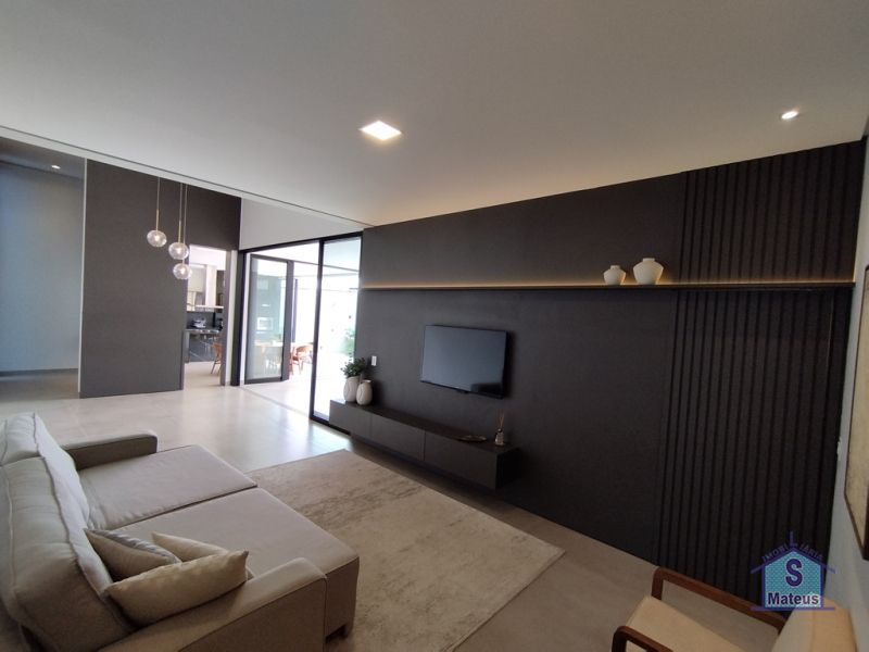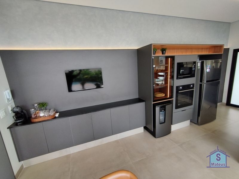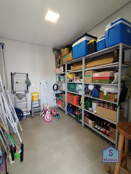 Casa semi nova com 03 dormitórios, sendo um com armários planejados e bancada para estudo, e outro suíte com espaço para closet; banheiro social, sala de jantar, sala de tv com home; cozinha gourmet com armários planejados, ilha, churrasqueira, forno à lenha, cooktop, coifa, forno e microondas embutidos; lavanderia, depósito, varanda, piscina com sistema de aquecimento solar, ampla garagem (para até quatro autos), sistema de produção próprio de geração de energia (fotovoltaico) e sistema de aquecimento solar para banhos e torneiras.