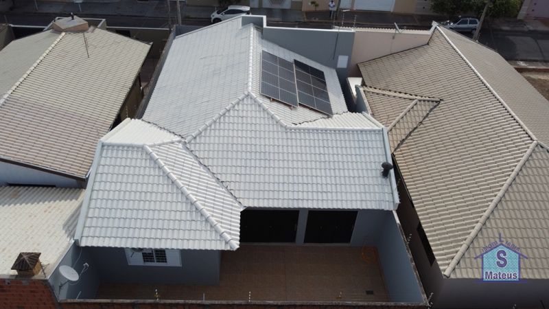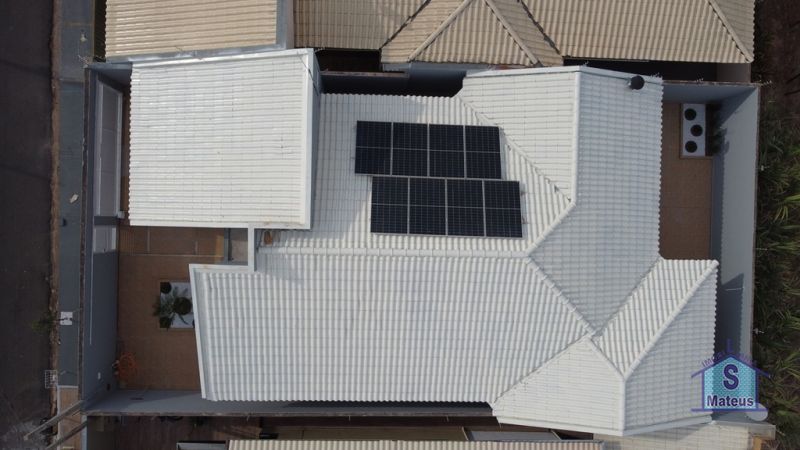 Casa de laje com 02 dormitórios com armários planejados e ar condicionado, sendo uma suíte; sala de tv com ar condicionado e home; sala de jantar, cozinha com armários planejados e cooktop; banheiro social, lavanderia com armário planejado; área de frente, garagem com portão automatizado; varanda gourmet com armário planejado, fogão embutido, coifa e churrasqueira; sistema de geração próprio de energia (fotovoltaico), sistema de alarme e cerca elétrica. Piso: Porcelanato.