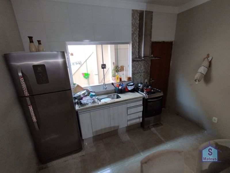 Casa de laje com 03 dormitórios (sendo uma suíte), sala, cozinha (com armários planejados), banheiro social, área de frente, garagem (com portão automatizado), lavanderia e banheiro externo. Piso: Cerâmica.