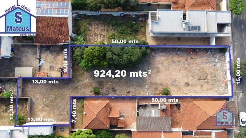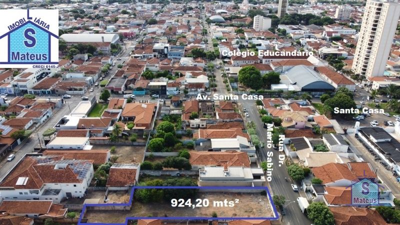 Amplo terreno todo murado, em localização nobre, próximo à Santa Casa, medindo 924,20 metros quadrados de área.
