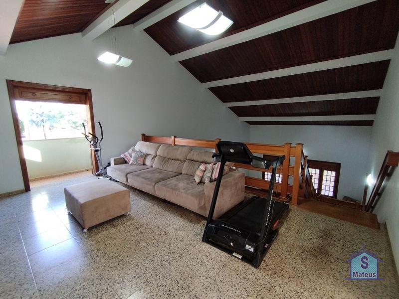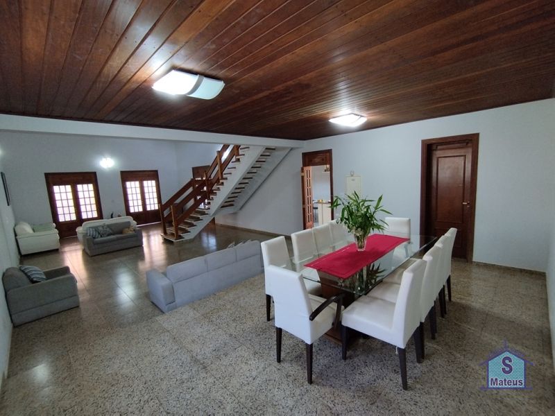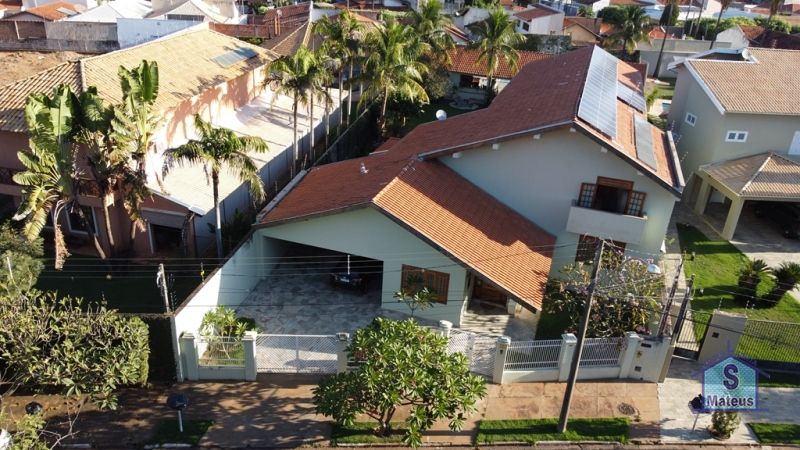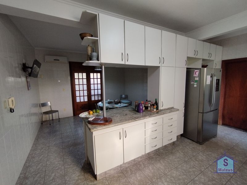 Maravilhoso sobrado contendo no piso térreo: 02 dormitórios suítes, hall de entrada, escritório com lavabo, ampla sala, sala de jantar, lavabo, copa, cozinha com armários planejados e fogão embutido; dois depósitos, banheiro externo, área de serviço, ampla varanda, sala de tv ao lado da área de lazer, que contém churrasqueira, forno e fogão à lenha; despensa, piscina, banheiro da piscina, lindo jardim e garagem com portão automatizado. Contendo no piso superior: Sala de tv, 03 dormitórios, sendo um com armário planejado e uma suíte com closet e banheiro social + sistema aquecimento solar nas torneiras e banhos e sistema de produção de energia (fotovoltaico). Piso: Cerâmica.