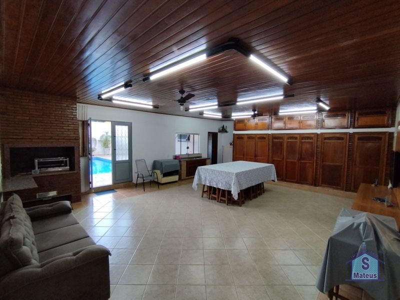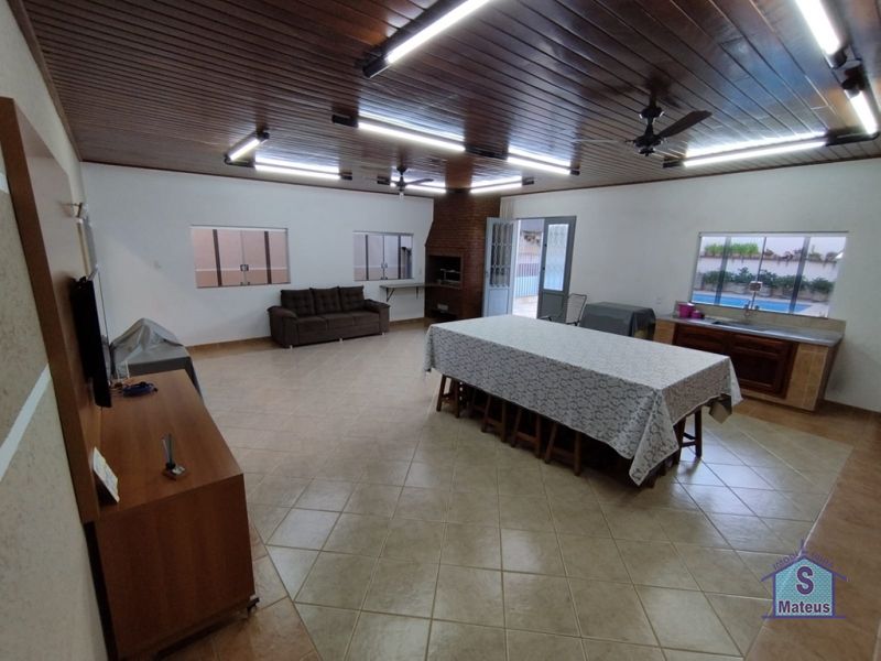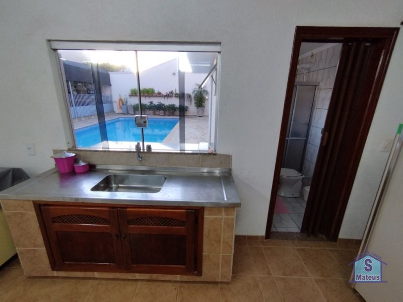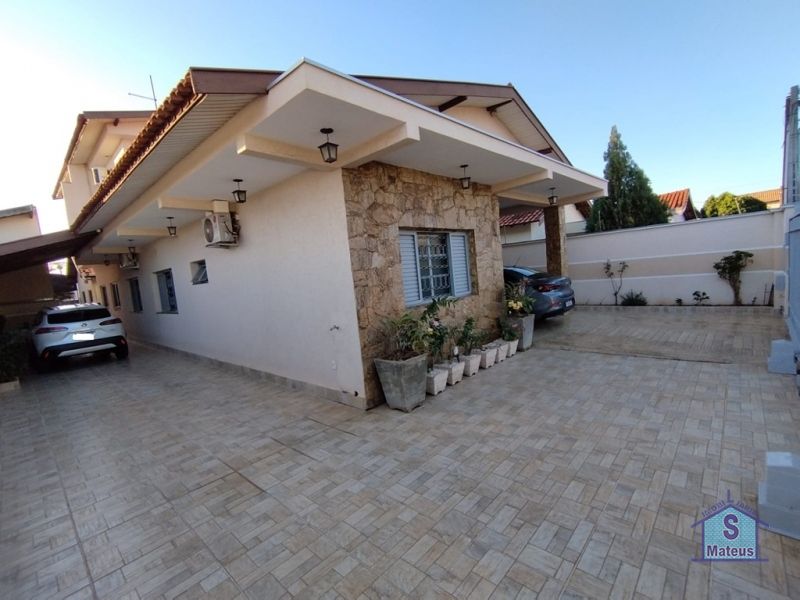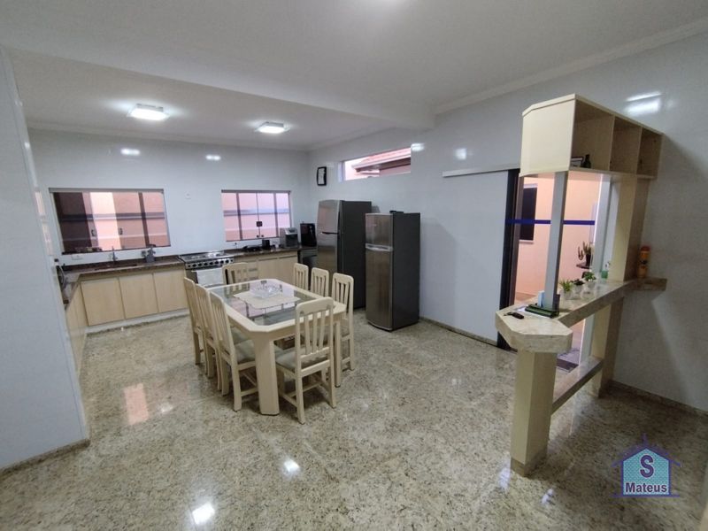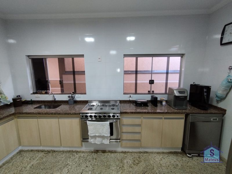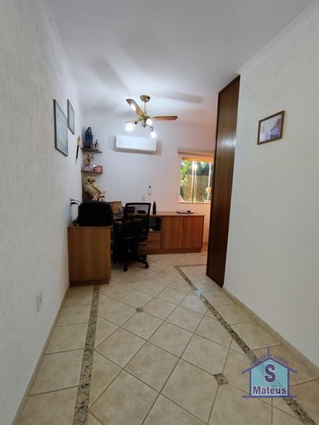 Sobrado com sistema de produção próprio de energia (fotovoltaico), contendo no piso térreo: 02 dormitórios, sendo um com armário planejado e outro com ar condicionado; banheiro social, sala de visita, sala de jantar, sala de tv com armário planejado e ar condicionado; ampla cozinha com armários planejados e fogão embutido; lavanderia; varanda gourmet com churrasqueira, armários embutidos e banheiro; depósito e piscina. Contendo no piso superior: 02 dormitórios, ambos com ar condicionado, sendo um com armário planejado, banheiro social e escritório também com armário planejado e ar condicionado. Piso: Granito e Cerâmica.