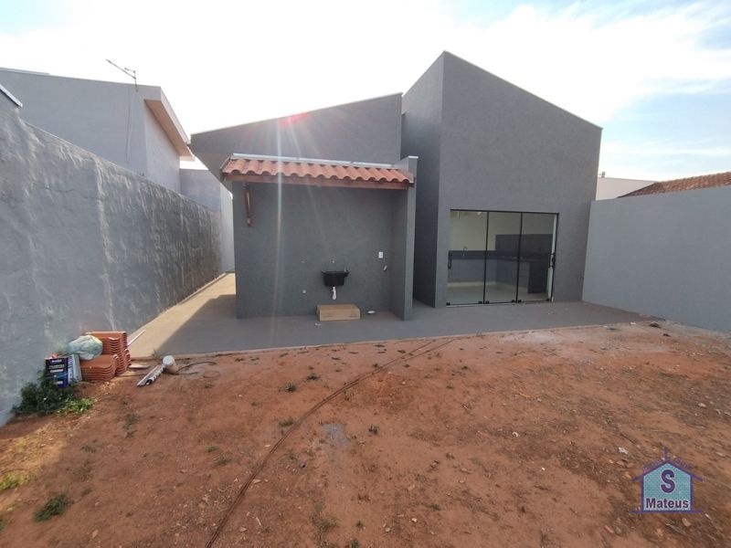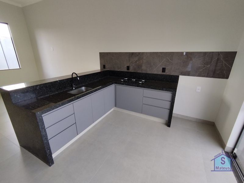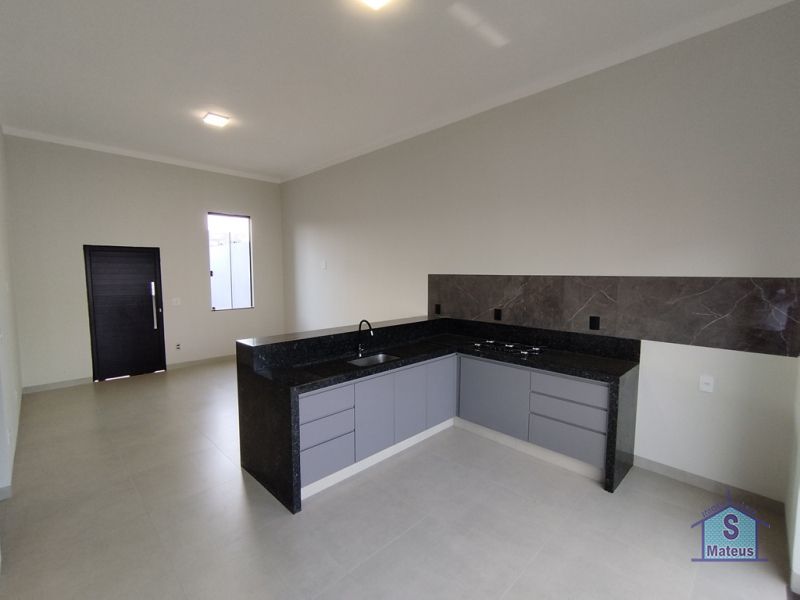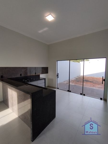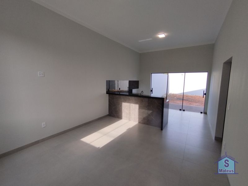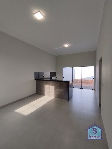 Casa nova de laje com 02 dormitórios, sendo uma suíte; sala com pé direito alto, integrada com cozinha com armários planejados e cooktop; banheiro social e área de serviço. Piso: Porcelanato.