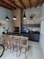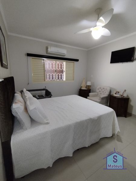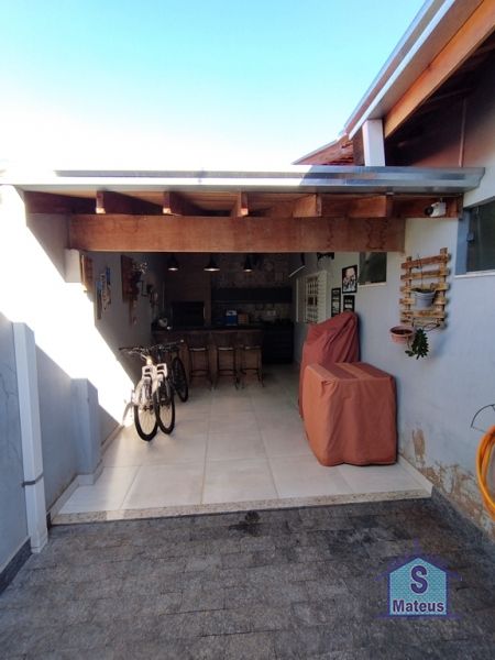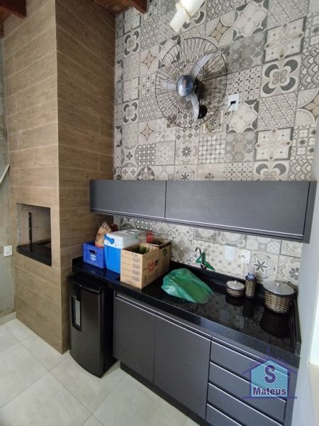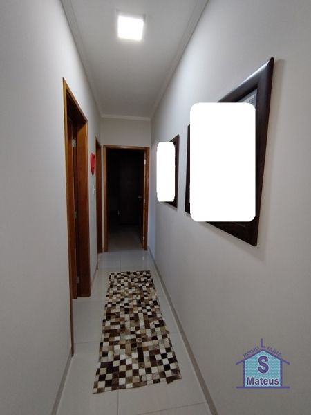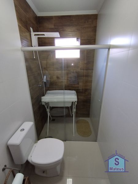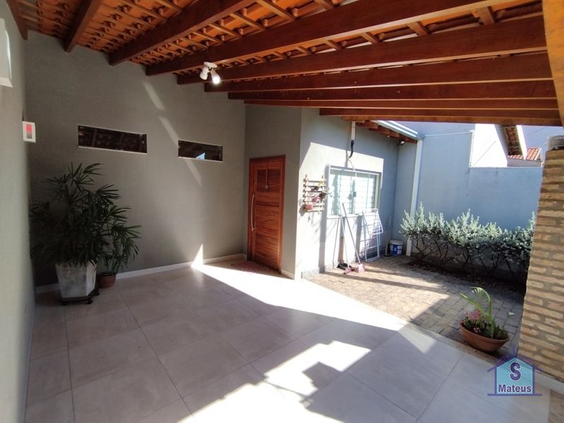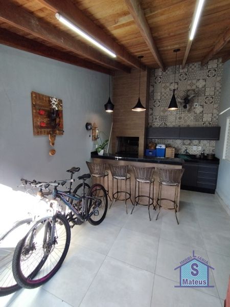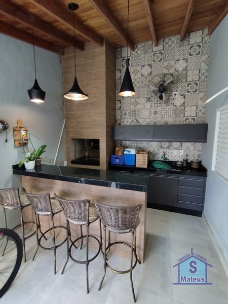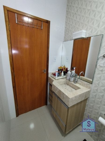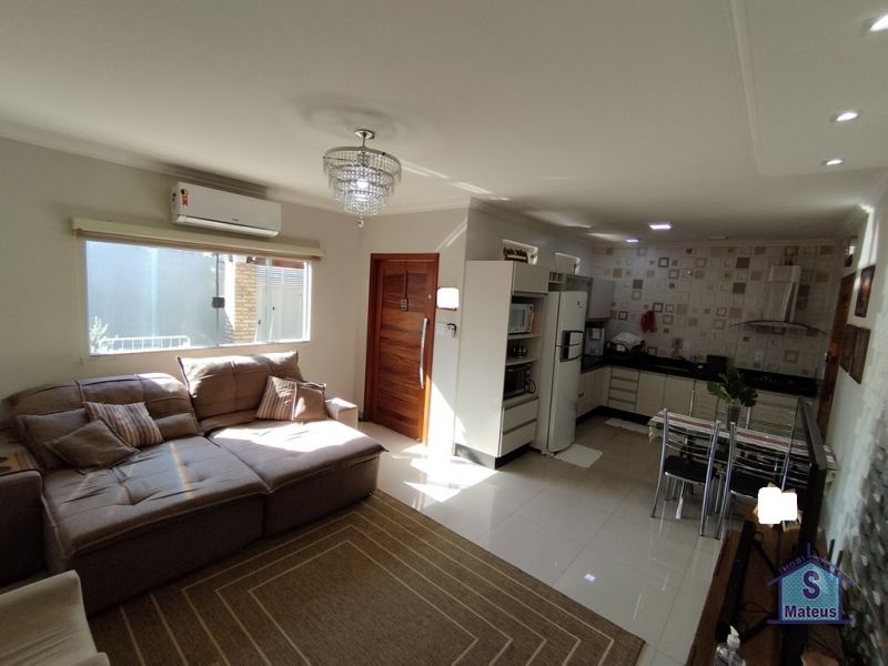 Casa de laje com cerca elétrica e sistema de câmeras, contendo 02 dormitórios (um com ar condicionado), sendo uma suíte; banheiro social, sala de tv (com ar condicionado) integrada com a cozinha que contém armários planejados, coifa e cooktop; área de frente, garagem com portão automatizado; área de serviço com armários planejados; e área de lazer com churrasqueira e armários planejados. Piso: Porcelanato.
