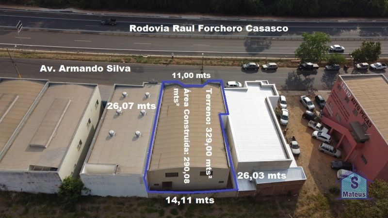 Prédio Comercial com frente para a Avenida Armando Silva, contendo cozinha, banheiros masculino e feminino; e mezanino. Piso: Concreto desempenado. Forro: PVC.