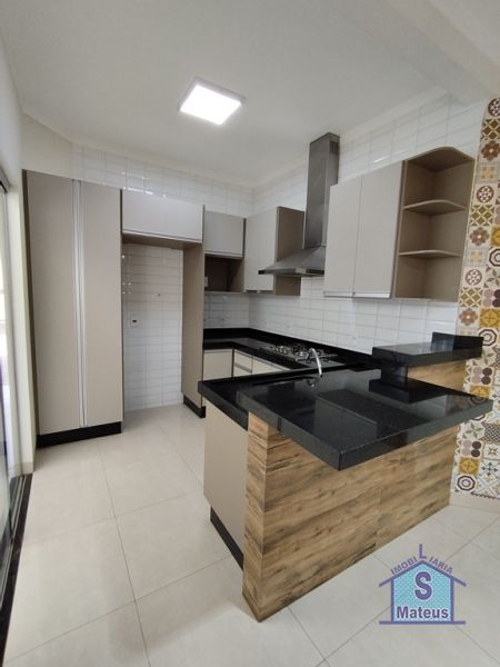 Casa de laje com 03 dormitórios, sendo dois com armários embutidos e uma suíte com closet; banheiro social, sala, cozinha com armários planejados, coifa e cooktop; área de frente, garagem com portão automatizado; lavanderia com armário e espaço para secagem de roupas; e área de lazer com churrasqueira, banheiro e depósito; e cerca elétrica. Piso: Porcelanato.