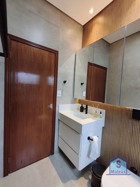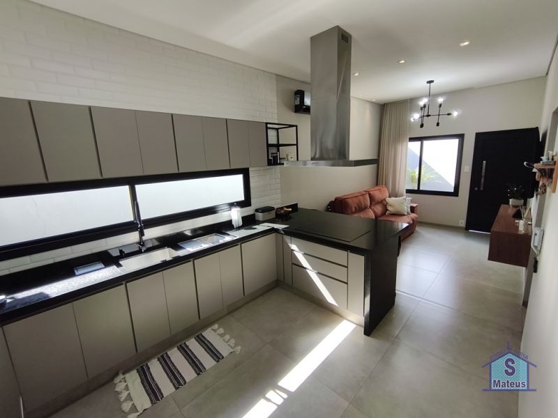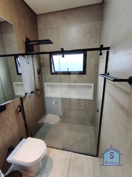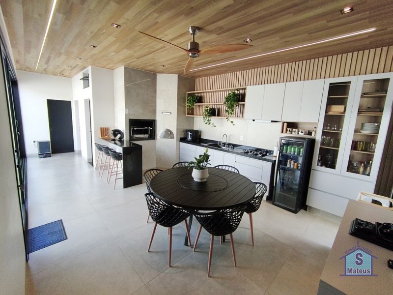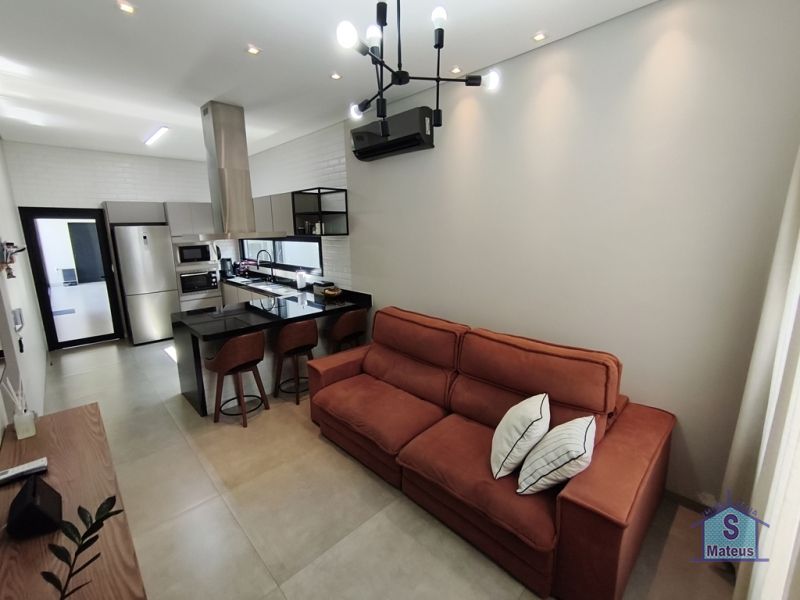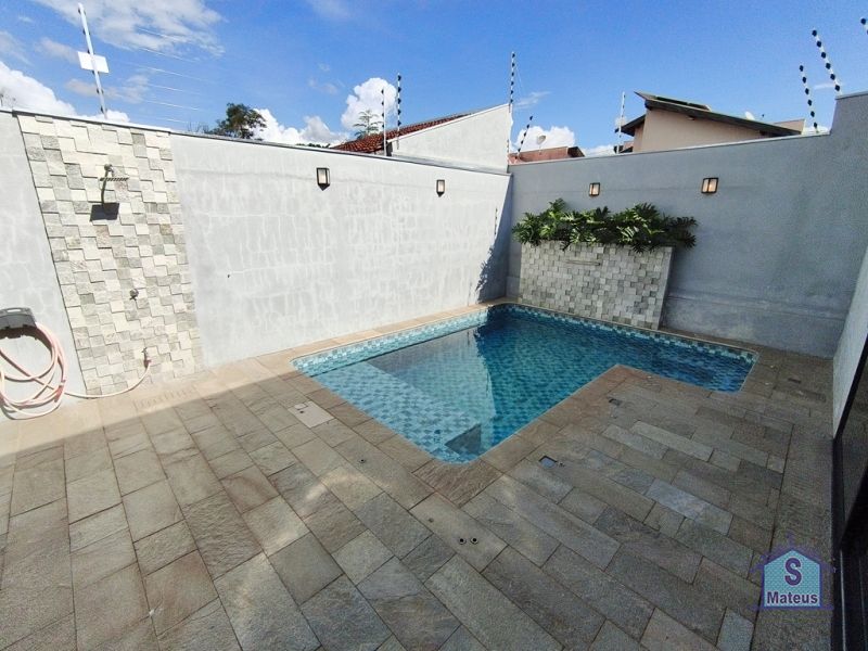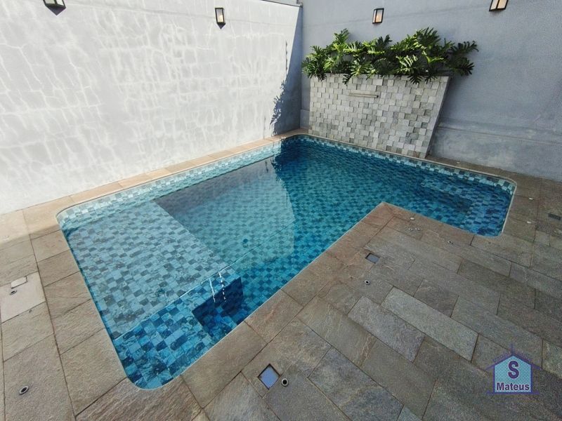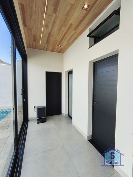 Casa de laje com 02 dormitórios climatizados, sendo uma suíte com closet; banheiro social, sala de tv climatizada, integrada com cozinha com armários planejados, torre quente (micro ondas e forno embutidos), cooktop por indução e coifa; área de frente, garagem com portão automatizado; varanda gourmet climatizada com churrasqueira, forno, armários planejados, coifa e cooktop; banheiro anexo a varanda; lavanderia com armários, depósito, piscina com sistema de aquecimento solar e sistema de produção próprio de energia (fotovoltaico). Piso: Porcelanato.