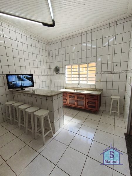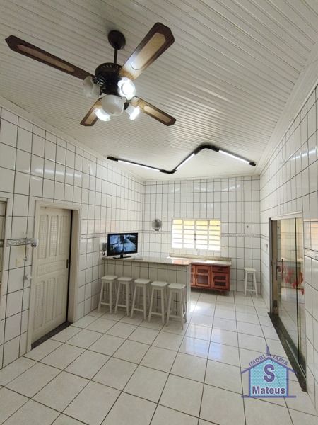 Casa com 03 dormitórios, sendo um com closet; sala dois ambientes (visita e tv); banheiro social, ampla cozinha com armário embutido; área de frente, garagem, varanda lateral; área de serviço, depósito, dormitório externo; banheiro externo, área de lazer com churrasqueira; piscina infantil, entrada secundária para autos com portão automatizado; cerca elétrica e sistema de alarme. Piso: Cerâmica.